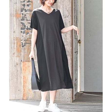 柔らかで軽いさらりとした肌触りのカットソーワンピース。