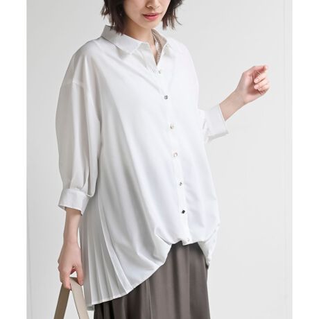 背中にプリーツをあしらったバックスタイルが魅力的なブラウス。