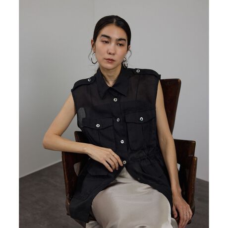 夏のレイヤードスタイルにぴったりな、シアーリネン素材のミリタリージレ。