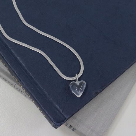 ・スネークチェーンにクリアのハートが映えるネックレスです