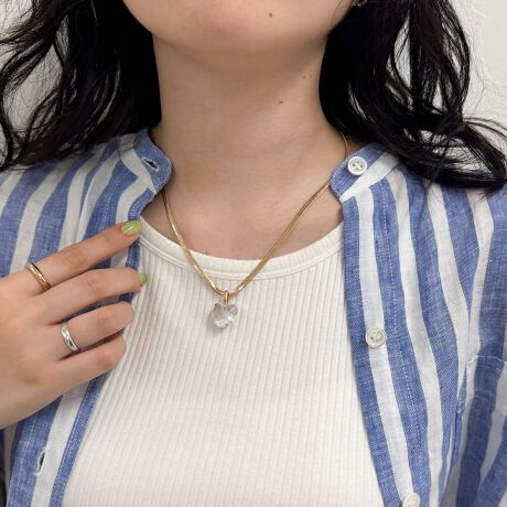 クリアハートの透明感が春夏コーデにぴったりなネックレス