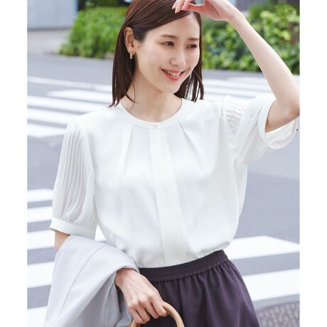 袖プリーツハーフスリーブブラウス