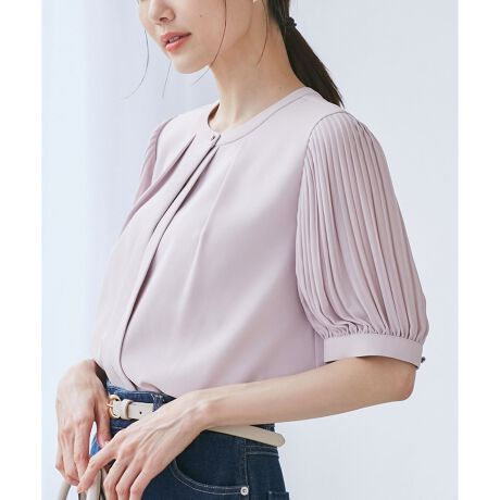 袖プリーツハーフスリーブブラウス