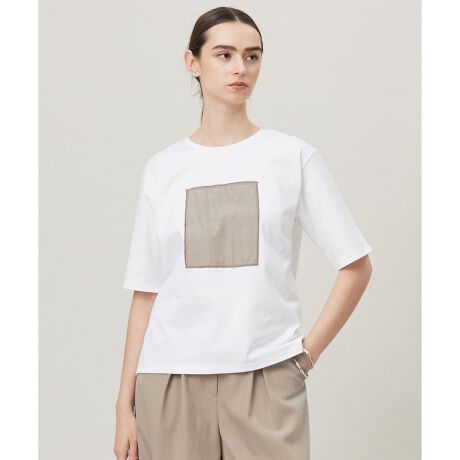 ■デザイン日本で織りこんだジャガード生地を胸元にたたきつけた国内縫製のTブラウス型トップスです。米沢で編み立てた繊細なペイズリー柄をそのまま活かし、上質なジャージー素材のボディにステッチしたシンプルなデザインTEE。接触冷感、UVケア、ウォッシャブルと、これからの季節に快適な機能性付きです。