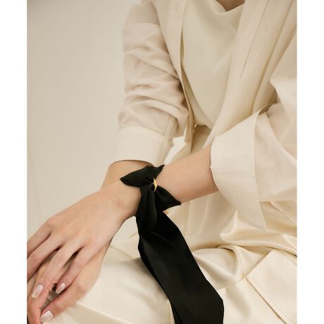 生地の後染め加工により鮮やかな発色が印象的なポイントに。スカーフリングは海の水面を連想させる有機的な表面感に仕上げています。今シーズンのロペはバングルのように手首に巻いてスタイリングに合わせていくのがおすすめです。そのほかにもネックに巻いたり自由にアレンジできるリング付きスカーフです。