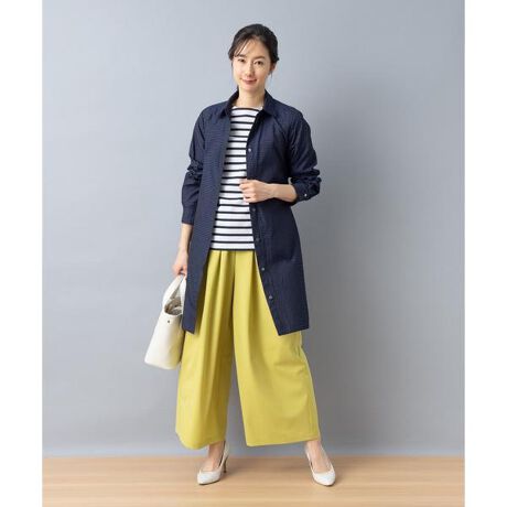 国内桐生産地の素材を使用したシャツカラーのロングブラウス。織り組織を変えてボーダー柄を表現しています。生地に凹凸感があり、立体的で適度なハリを持たせています。また軽量感があり通気性が良い点も特長です。共布ベルト付きなので、合わせるボトム次第で着こなしがお楽しみいただけます。------------------------------------着用シーズン:初夏 伸縮性:なし透け感:なしポケット:あり生地の厚さ:やや薄手お取扱い方法:ウォッシャブル(手洗い可)付属品:ベルト取り外し可-------------------------------------※商品の色味は、撮影場所や光のあたり具合、お客様のお使いの機器により色味が違って見える場合がございます。予めご了承ください。