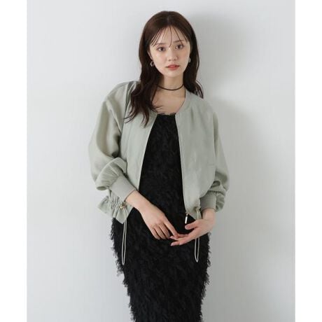 大きすぎず小さすぎず、絶妙なサイズ感で合わせやすい半シアーブルゾンです。ほどよいシアー素材をベースに、首元と袖口には柔らかいリブを合わせており、気軽に羽織れるデザイン。裾のアジャスターでシルエット調整ができます。