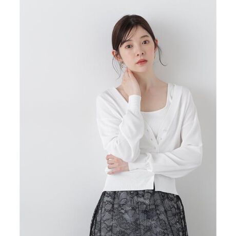 小さなボタンが愛らしいベーシックカーディガンです。お持ちのインナーと合わせて1枚着としてはもちろん、これからの季節、ノースリーブトップスやワンピースの羽織としても活躍。ほどよいフォルムがどんなアイテムとも相性良く着ていただけます。