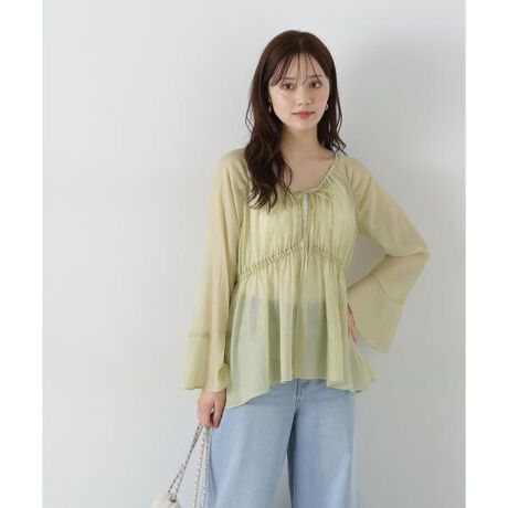 フレア袖や身頃の切り替え位置など、細部まで女性らしいシルエットに拘った楊柳ブラウスです。キャミワンピースやトップスにさらっと羽織ったり、中にビスチェやキャミソールを合わせるなど、様々なスタイリングを楽しめます。
