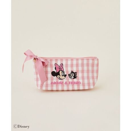 Maison de FLEURから「ミッキー&フレンズ」のなかよしなアートを使用した特別なアイテムが登場♪ピンクを基調としたギンガムチェック生地に、「ミニー」と「フィガロ」のアートを刺繍で表現したロングポーチ。
