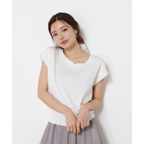 PROPORTION定番のハートカットネックの総針ニット。女性らしいデコルテラインを叶えてくれるネックデザインです。袖はフレンチスリーブで気になる二の腕をカバー。スカートもパンツも合わせやすく、オンオフ問わず着ていただけます。