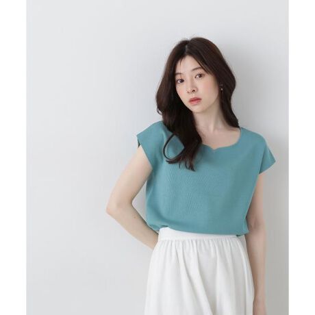 PROPORTION定番のハートカットネックの総針ニット。女性らしいデコルテラインを叶えてくれるネックデザインです。袖はフレンチスリーブで気になる二の腕をカバー。スカートもパンツも合わせやすく、オンオフ問わず着ていただけます。