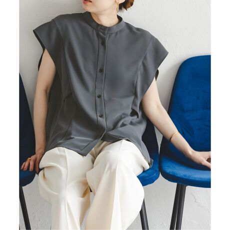 スカートにもパンツにもマッチする、洒落感の高いノースリーブブラウス。