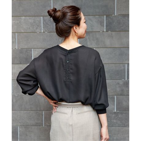 シアー感のあるブラウス素材で、Tシャツように着回しができるアイテム。