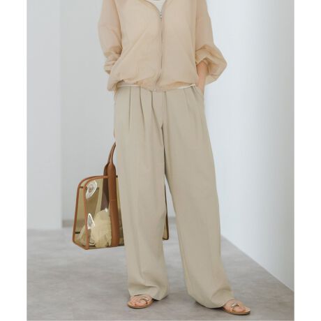 リラクシーなハイウエストデザインで女性らしい印象に仕上げたタックパンツ。