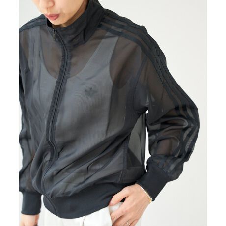 透け感のあるシアー素材を使用したトラックトップ。