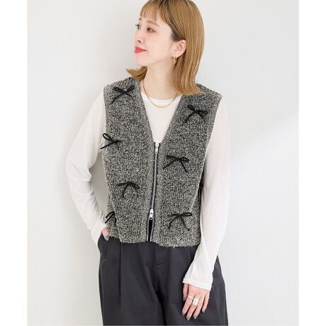 リボンモチーフの着映えするキャッチーなニットベスト。