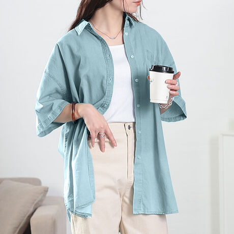 エッジなスパイス加えるヴィンテージ感。カジュアルの王道デニムアイテムを、褪せ感のあるグラデーションデザインに仕上げ、さっと羽織るだけで洒落感漂う「カッコよさ」を演出します。胸元には斜めに配置されたパッチポケットが遊び心をプラスし、小粋なアクセントに。ゆったりとしたオーバーサイズ感で、リラックスしながら体型カバーが可能。ラウンドカットされたヘムラインで柔らかさを演出しながら、両サイドのスリットが抜け感をプラスします。コットン100%で汗ばむ季節も通気性よく快適な着心地。