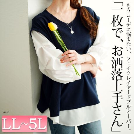 【大きいサイズ】 タックスリーブフェイクベストプルオーバー 大きいサイズ レディース トップス 春服