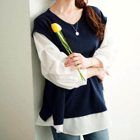 一枚でお洒落上手さん、フェイクベストプルオーバー。重ね着風なので着ぶくれの心配なしでコーデも悩まず、即お洒落完成!ベストとタック袖ブラウスを重ね着したようなレイヤード風デザイン。お腹やヒップラインを自然とカバーし、ふんわり立体的なタックスリーブは袖コンシャスな仕上がり。ボトムスと合わせるだけでいつもよりお洒落なスタイルに。