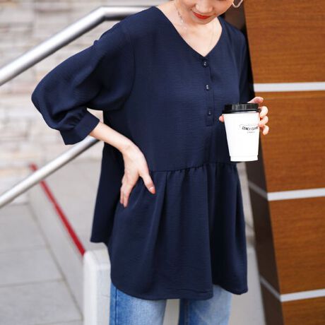 お腹隠し&スタイルアップ、ペプラムブラウス。暑い季節のお出かけも快適に過ごせる、ひんやり涼しい接触冷感&紫外線から守ってくれるUVカットのうれしい機能性!ハイウエスト切り替えで目線を上げてスタイルアップ効果◎ふわり軽やかペプラムでお腹&ヒップ周りをまるっとカバー!ストレッチ&シワになりにくく、気軽に着用できるのもうれしいポイント!