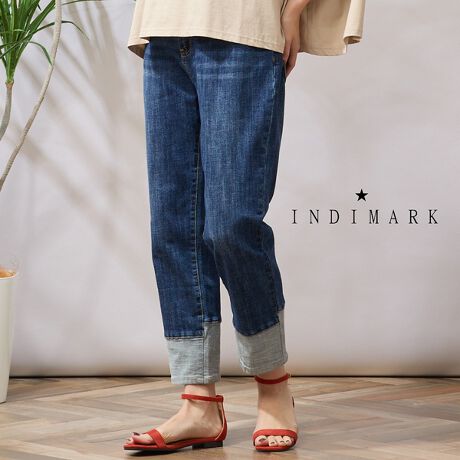 ■人気のデニムブランド「インディマーク」とのコラボ!遊び心のある裾切り替えが可愛いストレートパンツ■