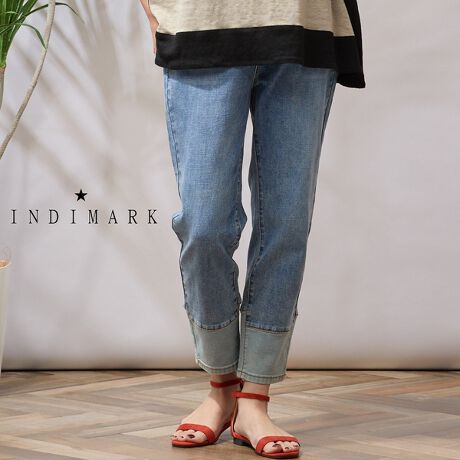 ■人気のデニムブランド「インディマーク」とのコラボ!遊び心のある裾切り替えが可愛いストレートパンツ■