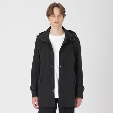 フード裏にアイコンチェックを配した洗練されたデザインのミドル丈アウター。シンプルなデザインの為、合わせるアイテムを選ばず、またジャケットが隠れる着丈に設定している為、ビジネスシーンでの着用も可能なコーディネート性の高い一着です。