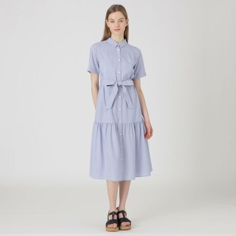 ◆軽やか素材を使用したシャツドレス