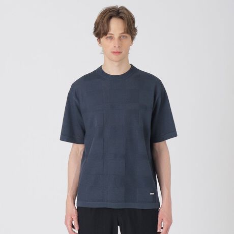 【上品見えドライタッチシャドーチェックのニットTシャツ】