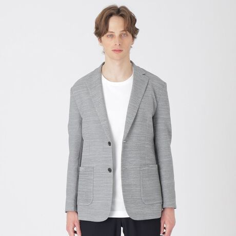 ニット工場で作成した濃淡の2色の色を編み込みメランジの深みのある素材を使用したアンコン仕様ジャケット。肩パッドを使用しないことで、軽さと快適な着心地を追求しました。カジュアルな素材感ながらベーシックなデザインの為、幅広いシーンでの着用が可能です。またマシンウォッシャブルが可能でイージーケア性の高さも備えています。