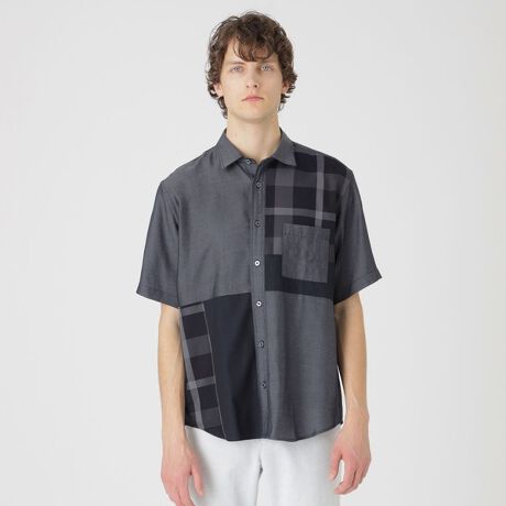 フロントをパッチワーク調に切り替えたデニム調のシャツ。一部にトーナルカラー(同系色)のクレストブリッジチェック柄を使用する事で、ブラックレーベルならではの一着に。トレンド感のあるリラックスシルエットを採用しています。