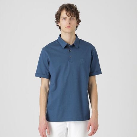生地の凹凸により肌離れが良い清涼感ある素材が特徴のポロシャツ。袖口裏にクレストブリッジチェックをあしらう事でデザインアクセントに。左胸の刺繍もポイントです。