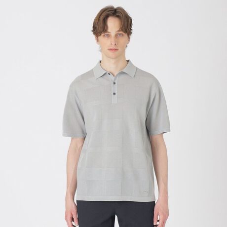 【上品見えドライタッチシャドーチェックのニットポロシャツ】