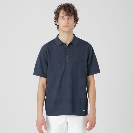 【上品見えドライタッチシャドーチェックのニットポロシャツ】