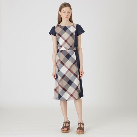 ◆クレストブリッジチェックが華やかなフィット&フレアドレス