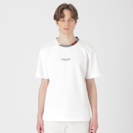 衿にクレストブリッジチェックをあしらったTシャツ。フロントのブランドロゴがさりげないデザインポイントです。ジャケットやブルゾンのインナーとしても衿元のチェックがコーディネートのアクセントになり活躍する一着です。