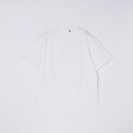 独特のネックラインが首元を自然に包み込み、単体でシンプルに着るのはもちろん、他のアイテムと重ね着するインナーとしても使える万能なアイテムです。