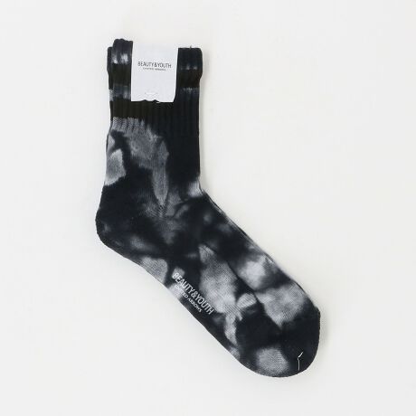 シンプルなツーラインのベーシックカラーと軽快なタイダイカラーのクルーソックス。