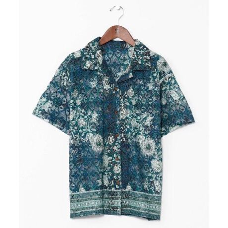 [型番:IAC-5148-2025]インドのペイズリーや花柄をプリントしたレディースシャツ。トレンド感のある涼し気レース素材に注目。レイヤードスタイルや羽織として、コーデが楽しめる一品。