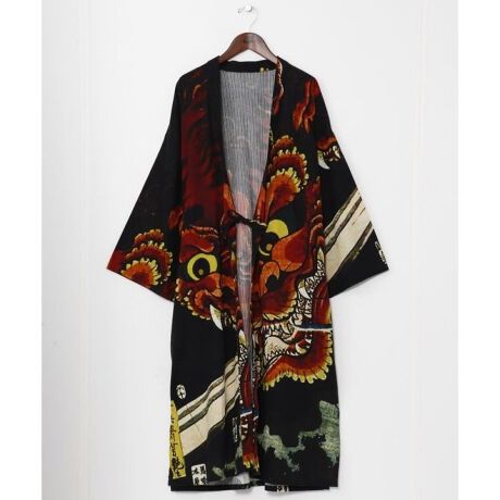 日本の美をまとうNIPPON ARTシリーズの羽織。浮世絵をモチーフにリデザインした大胆で粋な柄が印象的です。表情のあるコットンドビー生地を使用し、ゆったりとしたシルエットで快適に羽織れます。がしゃどくろや猫、兎など多彩な柄展開で、両サイドには便利なポケット付き。性別を問わず楽しめる上品な和柄羽織です。