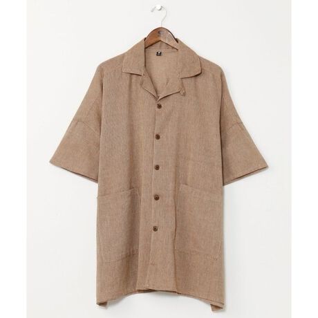 [型番:NWW-5115-2025]2色の糸で織られたネパールコットン生地のビックサイズメンズシャツ。肌ざわりが良く、薄地で通気性に優れた、ユニセックスで着用できる一枚。パッチポケット付き。