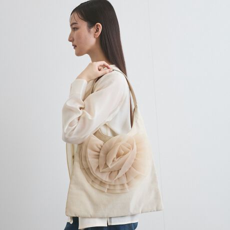 存在感のあるビッグローズを大胆に施した大人可愛いトートバッグ。