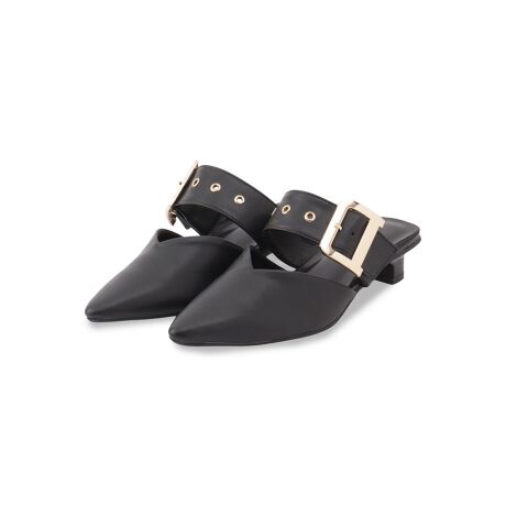 ハトメベルトのデザインがトレンド感たっぷりのポインテッドサンダル。