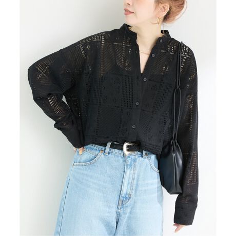 甘すぎないレースを使用したバンドカラーシャツは、レースが際立つように、あえてシンプルなデザインにしています。ゆったりめなサイジングですがレースが綺麗見えし、デイリーからお出掛け時にもオススメのアイテムです!シャツとして一枚着でももちろん、羽織としても使えるので幅広い着こなしていただける一着です。