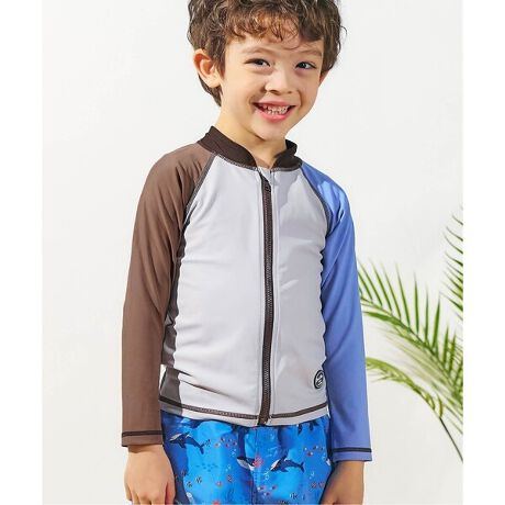 配色がポイントのラッシュガードはくすみカラーで落ち着いた印象に。ラグランスリーブで動きやすいので海やプールはもちろん、アウトドアでも活躍してくれます◎ジップアップタイプで着脱も楽ちんです♪フードなしもうれしいポイントです!