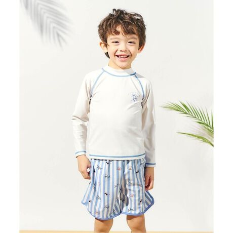 きょうりゅう・ストライプラッシュガード付きボクサー水着_UVカット