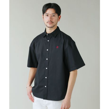 胸元にブランドロゴ刺繍を入れたレギュラーカラー半袖シャツです。