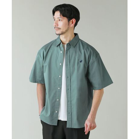 胸元にブランドロゴ刺繍を入れたレギュラーカラー半袖シャツです。