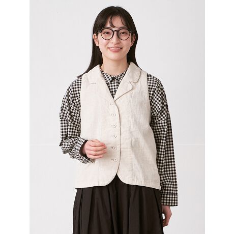 ナチュラルスタイルな雰囲気を醸し出している綿麻接結生地で仕立てたベストです。